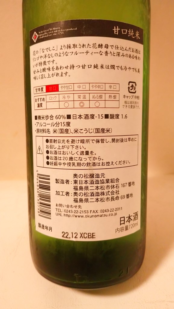 奥の松 甘口純米
