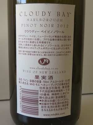 CLOUDY BAY Pinot Noir 2012